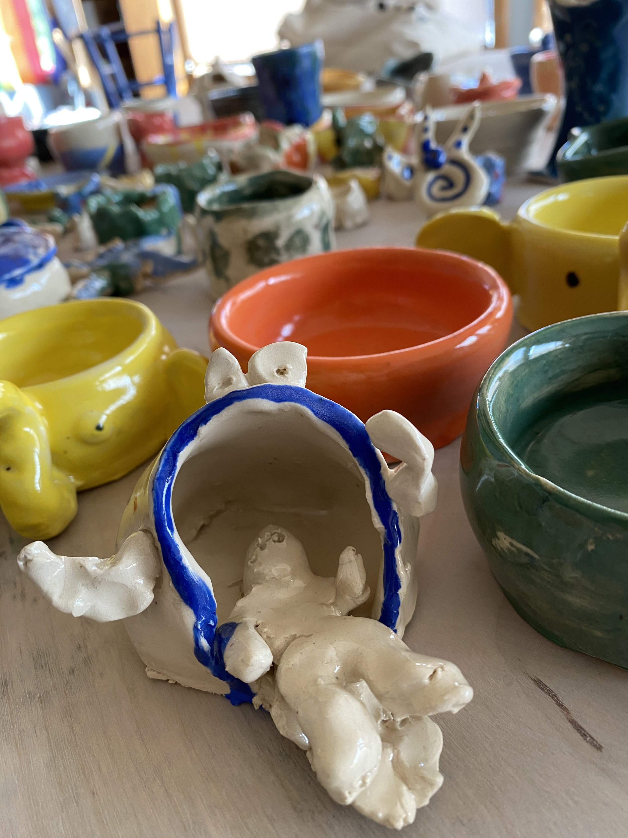 1-2 saved/fired pieces per child. Cups/Mugs/Bowls/creatures